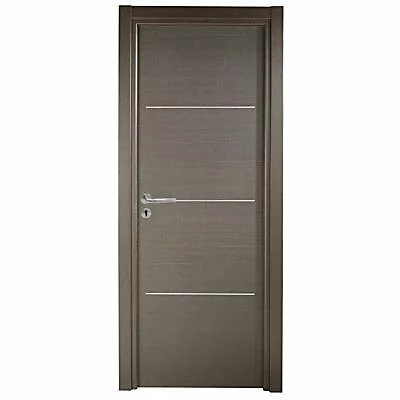 Bloc porte modèle TRIACONTA finition gris clair avec 3 inserts horizontaux aluminium satiné, H 204 X L 63 cm poussant droit