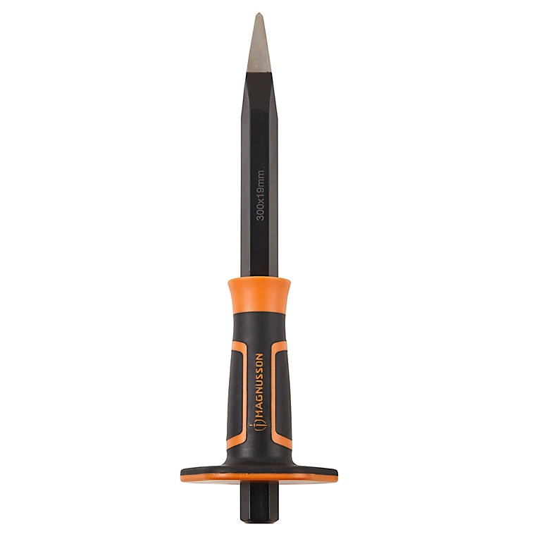 Burin à béton de Magnusson forgé en acier trempé pour la résistance de la face de frappe et de la pointe, pour garantir un transfert d’énergie efficace sur la pièce de travail. Avec garde.