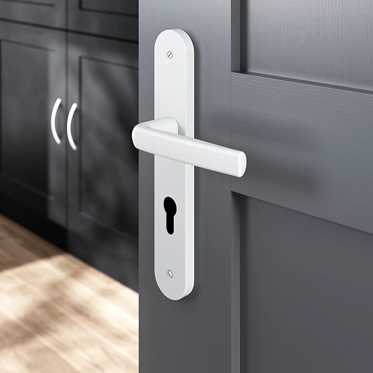 Ensemble poignée sur plaque Incurvécylindre GoodHome Primel mat blanc L.126mm x l.40mm entraxe 195mm