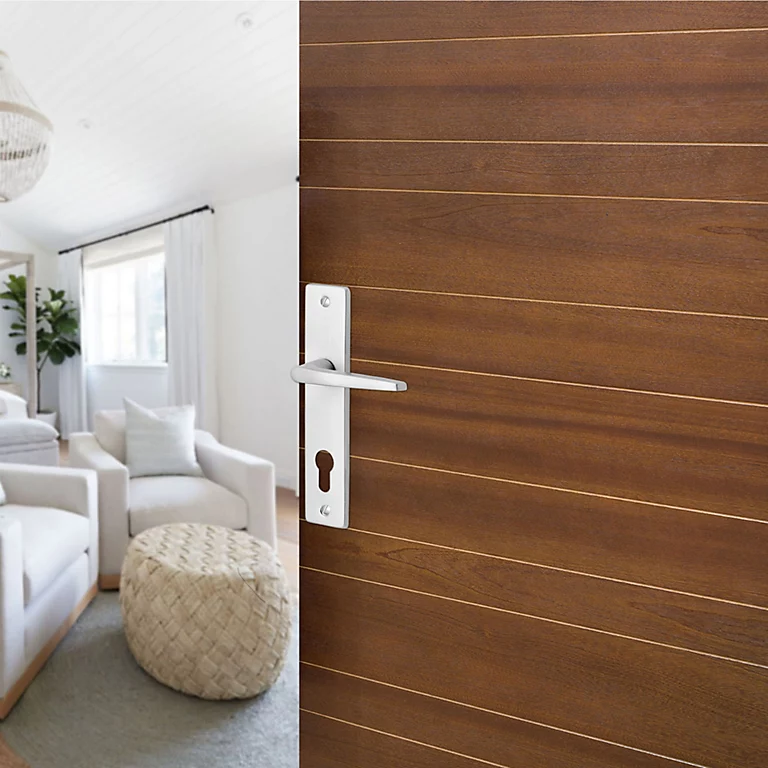 Ensemble poignée sur plaque rectangulaire Colan effet argenté satin gris chromé L.106mm x l.39.8mm entraxe 165mm
