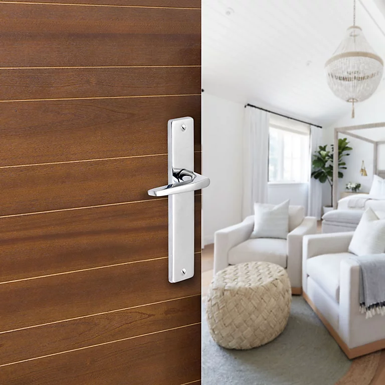 Ensemble poignée sur plaque rectangulaire Colan effet chromé brillant gris L.106mm x l.39.8mm entraxe 195mm