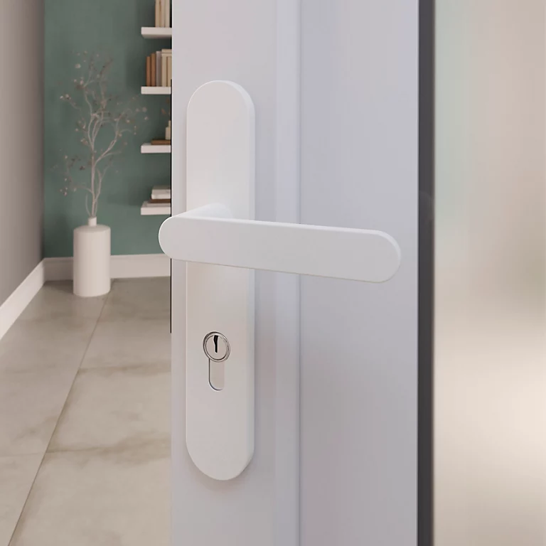 Ensemble poignée sur plaque rond GoodHome Minzh blanc L.120mm x l.40mm entraxe 195mm