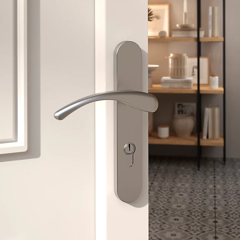 - Elle possède une largeur de plaque étroite et un col long pour une installation et une utilisation faciles sur les portes avec moulures