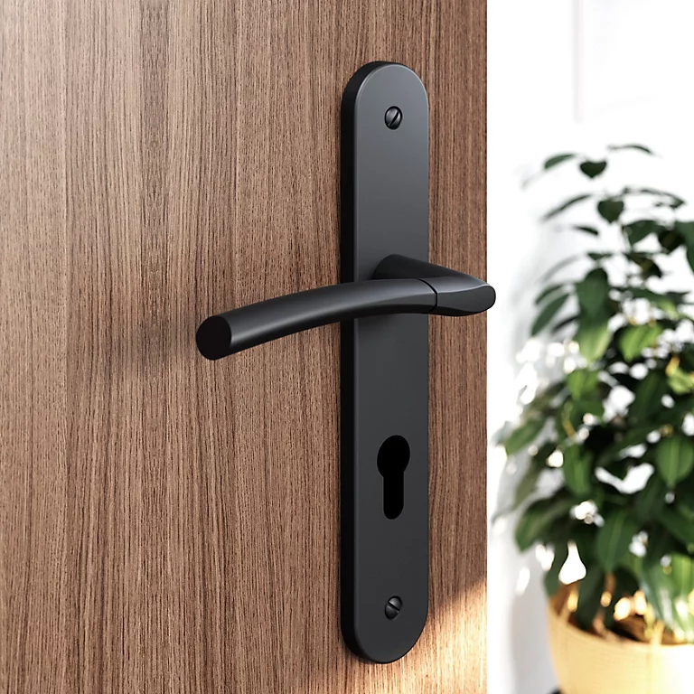 - Poignée de porte tendance sur plaque offrant une touche décorative à votre porte