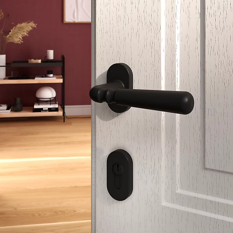 Ensemble poignée sur rosace à visser GoodHome Kilhog noir Ø63mm