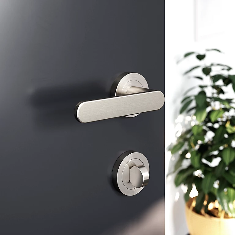 - Associez cette poignée de porte sur rosace à des boutons de porte, des poignées de porte coulissante, des poignées de fenêtre ou des poignées et des boutons de meuble de la même gamme pour créer un style coordonné