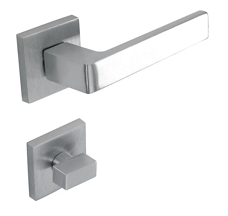 - Poignée sur rosace carrée finition satinée pour une ligne moderne et épurée. Comprend : poignées + bouton condamnation + visserie + 2 carrés (7 mm et 8 mm). Compatible pour tout modèle de serrure à condamnation