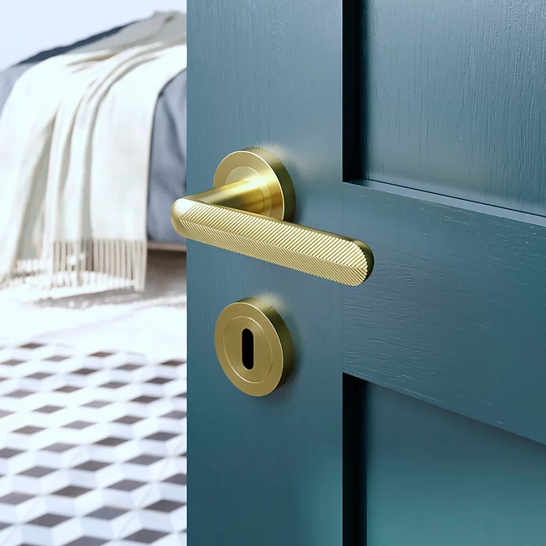 Rosace de fonction rond à visser à serrure GoodHome Duod effet laiton satin or Ø50mm